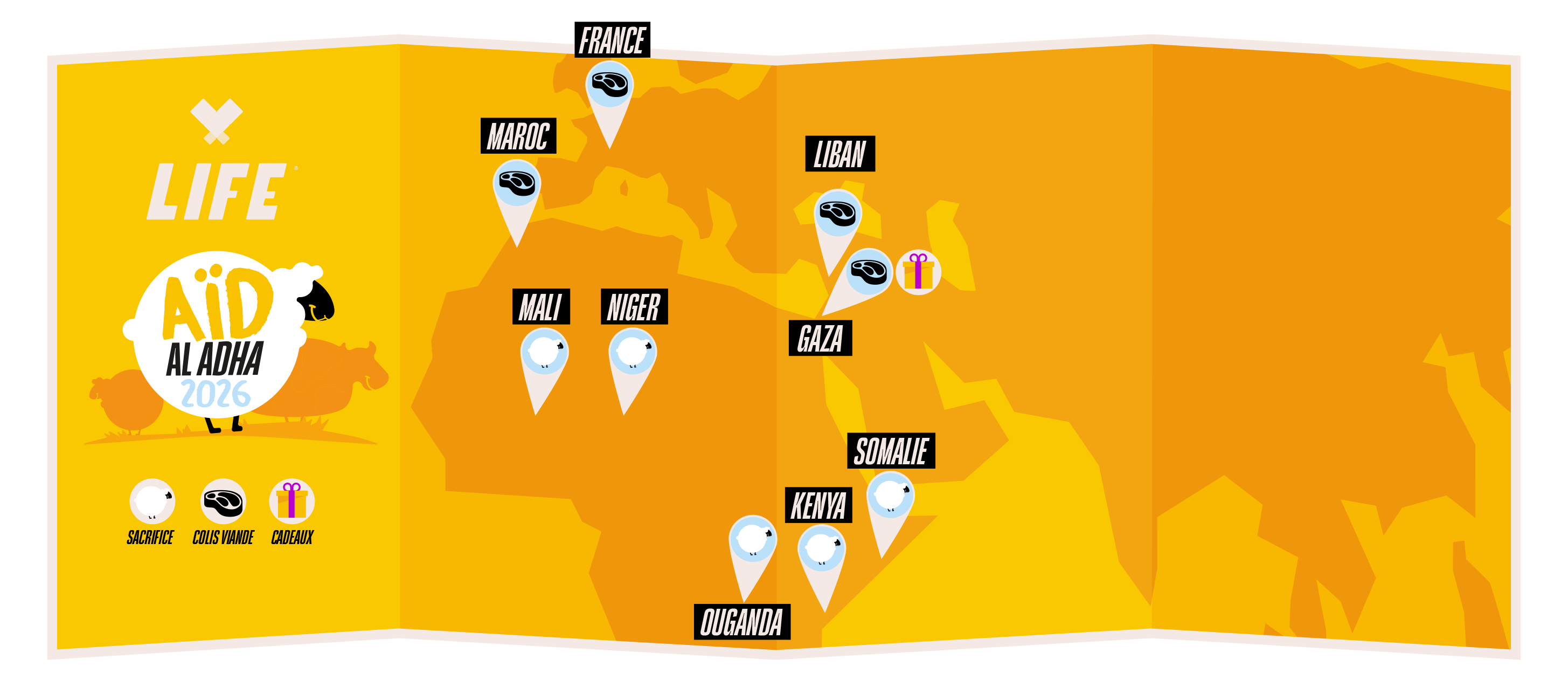 Avec LIFE, votre don n'est plus abstrait ✨. Pour chaque don de mouton ou de bœuf, vous recevez via Whatsapp et par email un lien de suivi GPS dans les 3 jours de l'Aïd. Découvrez en images les sourires et la joie des familles qui pourront fêter l'Aïd al Kebir dignement grâce à votre générosité 🫶.